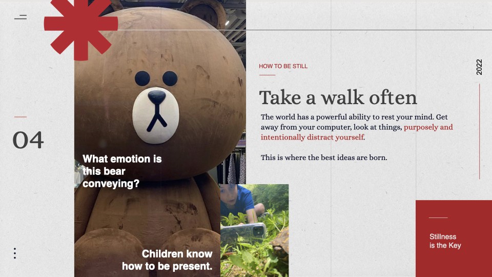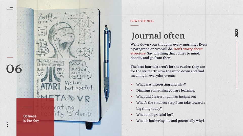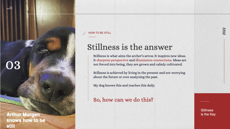 Last year, I did a talk about finding stillness; this is a synopsis.